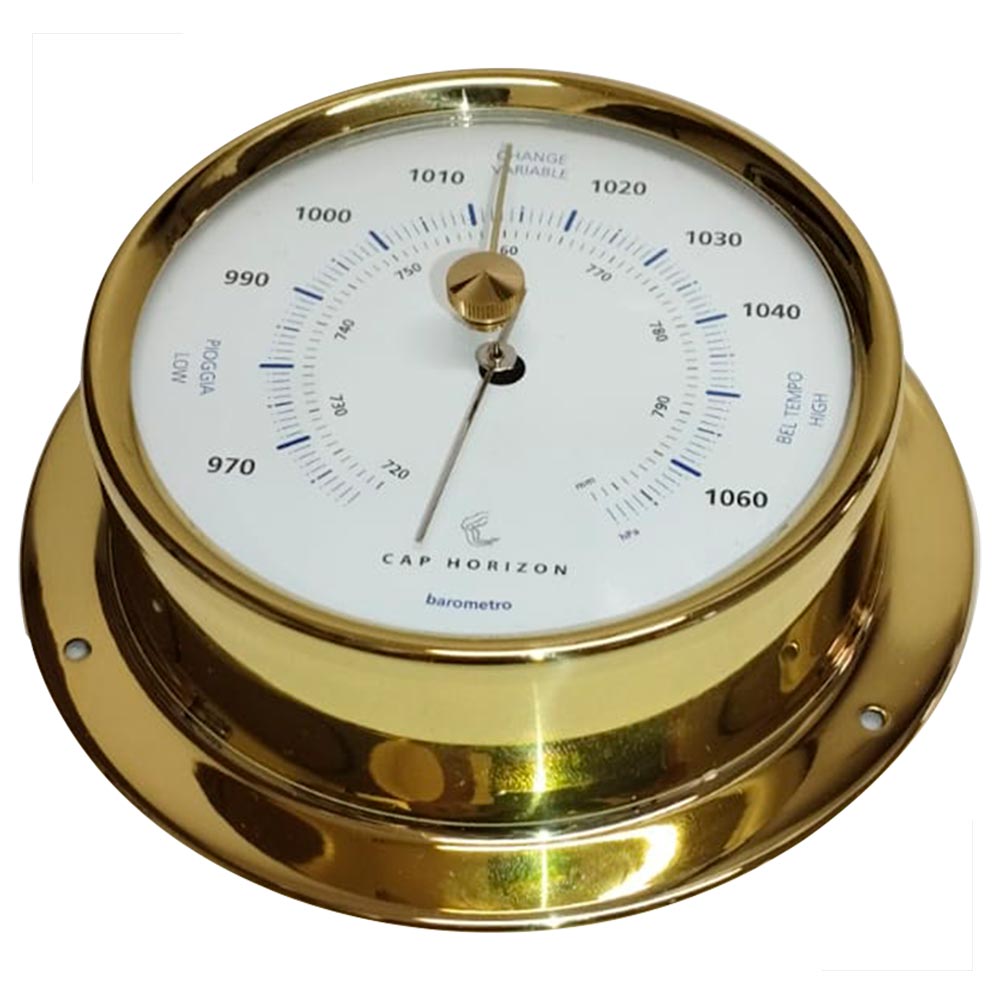 A linha Cap Horizon produzida pela tradicional empresa alemã Barigo é extraordinária ferramenta para ter a bordo do seu barco ou mesmo em sua casa de praia. Elegante e bem acabada carcaça feita de latão caprichosamente polido, além de estilo na decoração é ainda um instrumento de boa e confiável precisão.