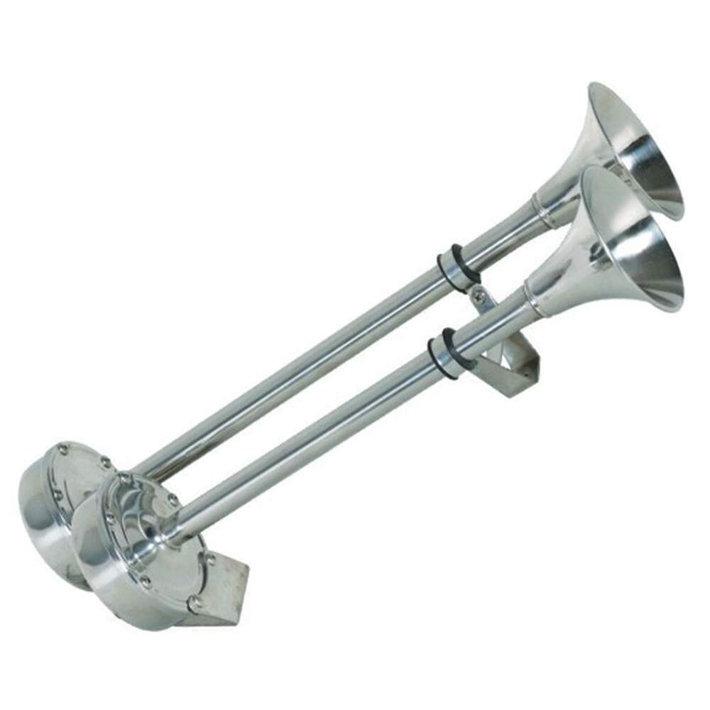 Buzina marítima de inox, elétrica com 2 cornetas. 12v.