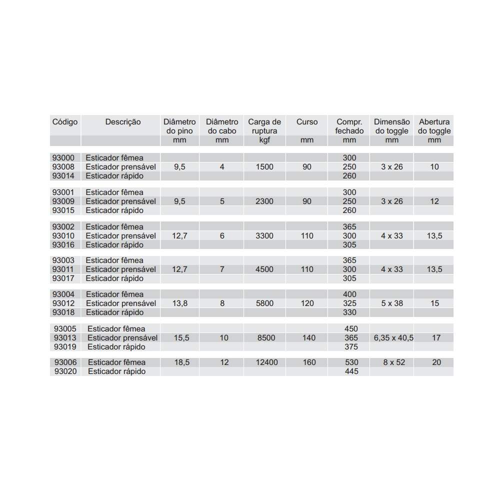 Esticadores Fêmea Rapido para veleiros de diversos tamanhos. Possuem uma das extremidades com terminal fêmea (universal) e a outra ponteira de conexão rápida (tipo norseman).