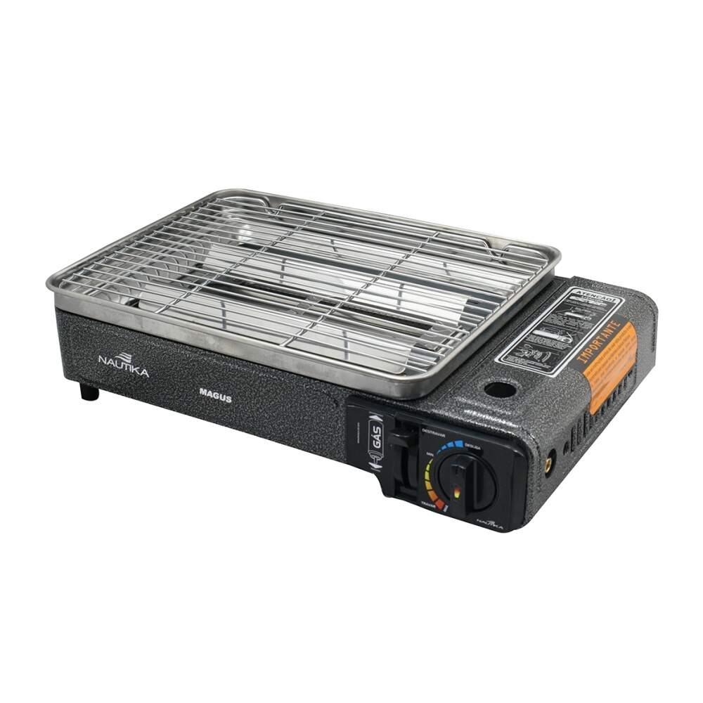 Fogão, Chapa e Grelha. Funciona com cartucho de gás, CAMPGAS.