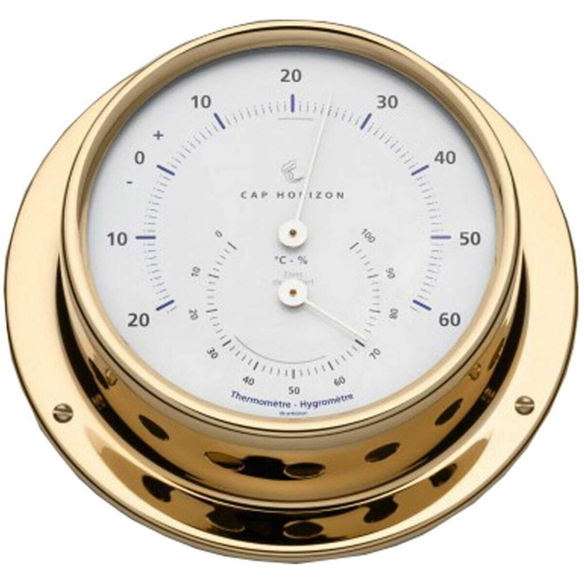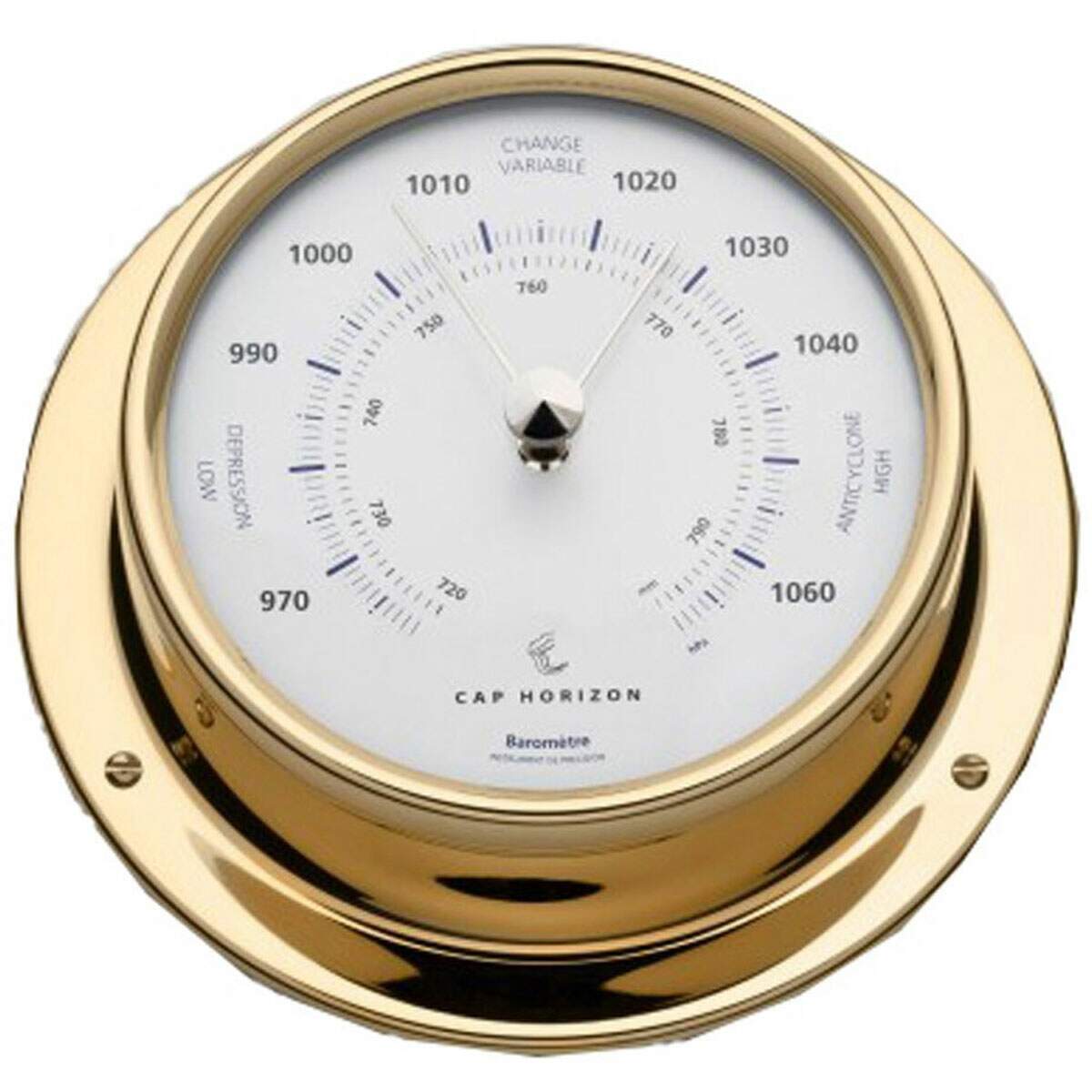 A linha Cap Horizon produzida pela tradicional empresa alemã Barigo é extraordinária ferramenta para ter a bordo do seu barco ou mesmo em sua casa de praia. Elegante e bem acabada carcaça feita de latão caprichosamente polido, além de estilo na decoração é ainda um instrumento de boa e confiável precisão.