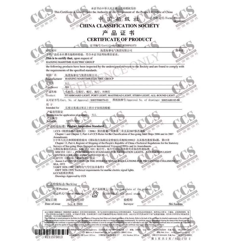 - Possuí certificado WZ09P01073-CCS de certificadoras europeias aceito pela Marinha do Brasil;