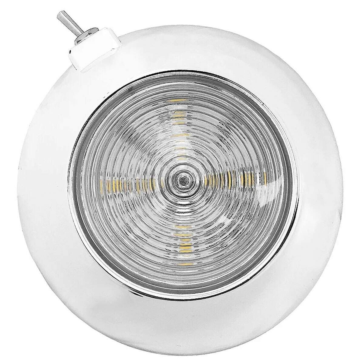Luminária de Cabine em LED branco de alta intensidade e com luz de cortesia azul acoplada. Com chave de 3 posições, pode-se escolher entre as posições desligado, Iluminação plena ligada ou então o modo cortesia que evita a total escuridão quando as luminárias estão todas apagadas mantendo um pequeno led azul acesso para uma mínima iluminação. Com tecnologia a led de alta intensidade, corpo em ABS e lente em PS Cristal, ambos com proteção UV e chave interruptor acoplado.