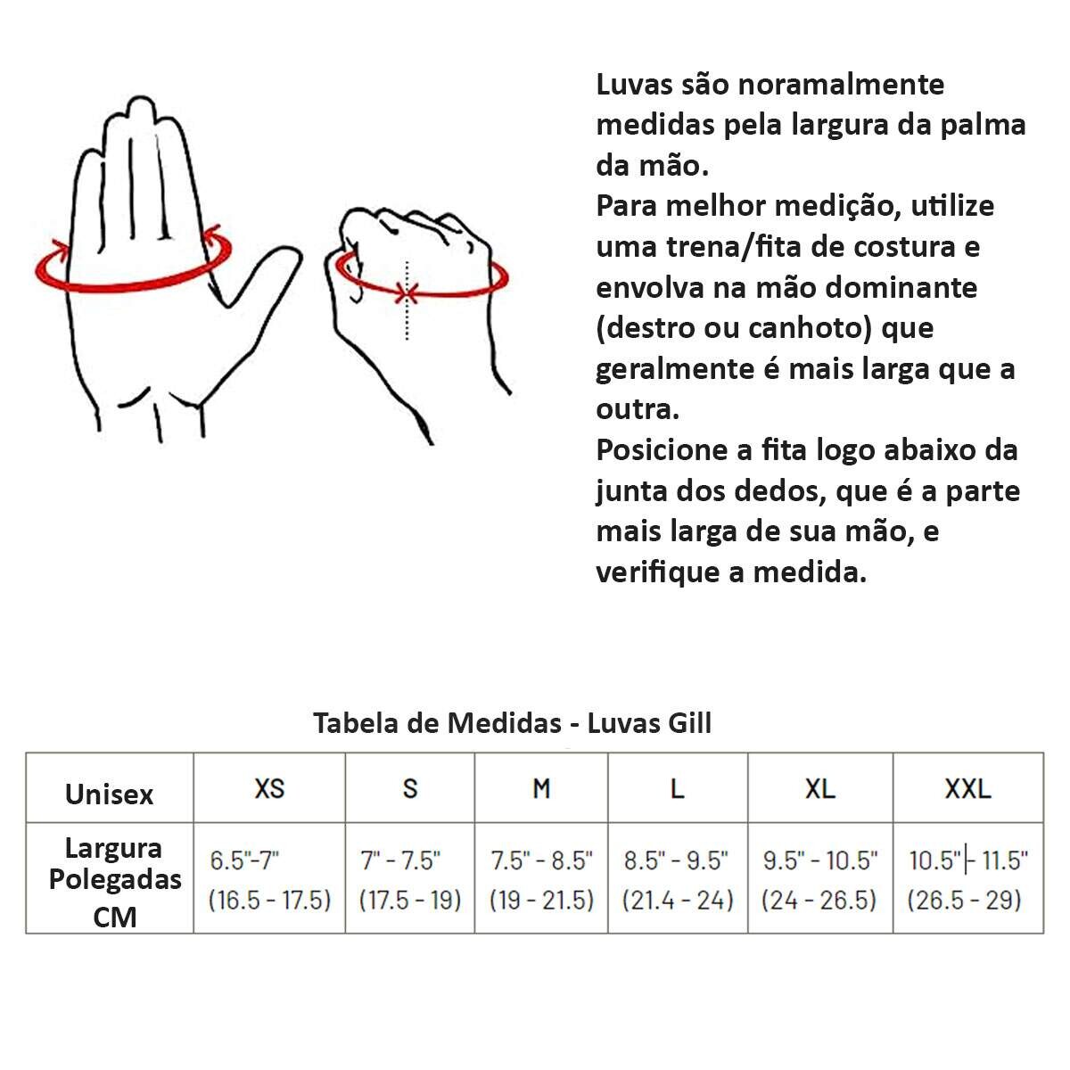 *Confira nas imagens como tirar a medida de sua mão e escolher o tamanho certo.