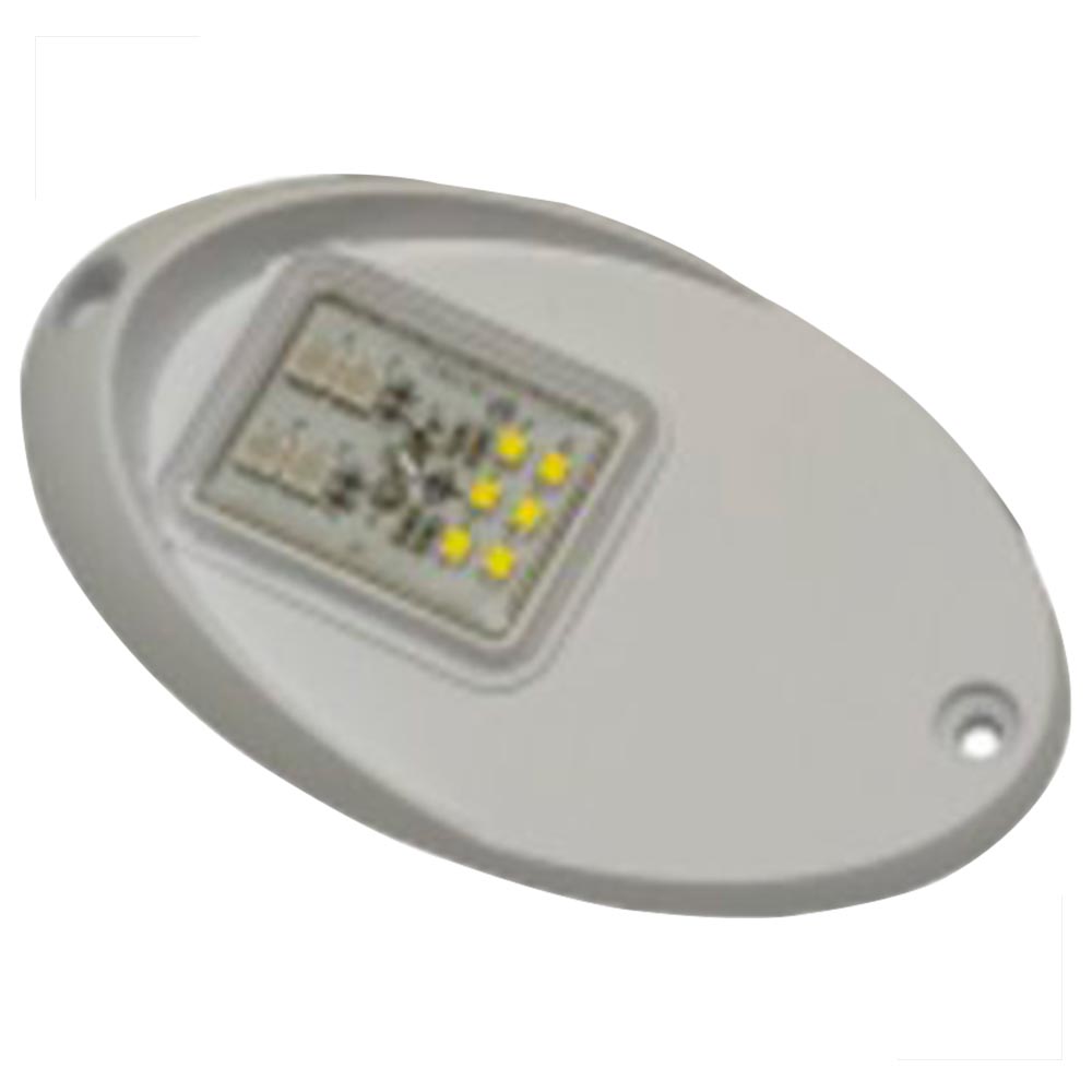 Uma luz de navegação tipo tubarão com instalação de sobrepor no casco e que ainda possui a função de luz auxiliar de atracação.