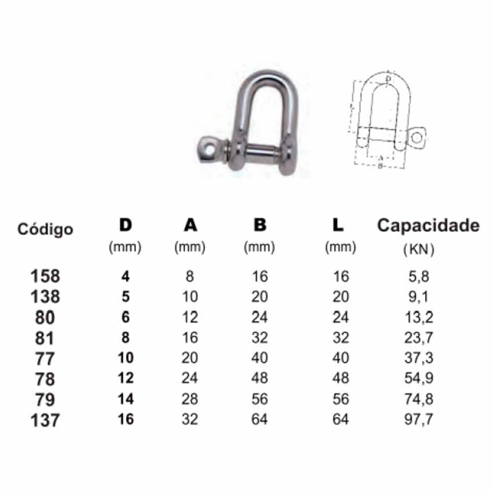 Manilha Reta em Inox 316 4mm