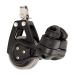 Os moitões da linha Nautos Organic (40mm e 57mm) aliam as laterais em composite (Nylon + Fribra) e pistas de alumínio anodizado, roldanas e esferas de Derlin, oferecendo um conjunto de extrema resistência ao calor e fricção quase zero para maior performance em barcos de médio porte, tipicamente até 32 pés.