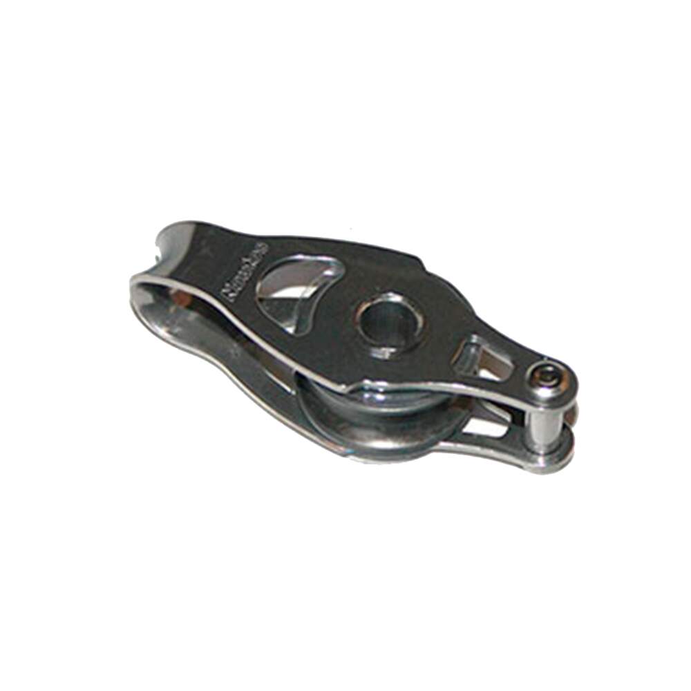 Rendimento real para os menores moitões do mercado. Alta performance e capacidade para roldanas de 20 MM. Corpo, pista e eixo em aço inox e roletes de delrin, sobre eixo rígido absorvem mais carga que aqueles com esferas. Roldanas em delrim super resistentes.