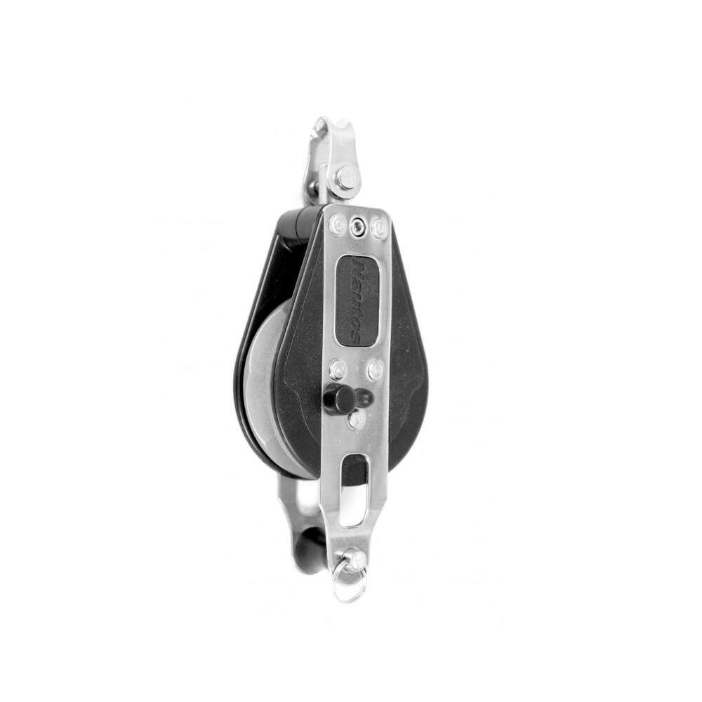 Os moitões Line 57 da Nautos possuem desenho classico, Os modelos com catraca possuem roldana de aluminio, que aumenta a capacidade de carga e melhor tração do cabo. Verifique se você precisa da roldana com giro a esquerda ou a direita.