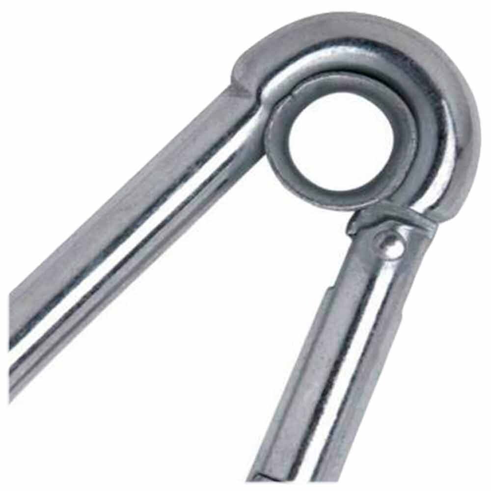 Mosquetão ou engate rápido fabricado em aço inox com 5 mm de espessura.
