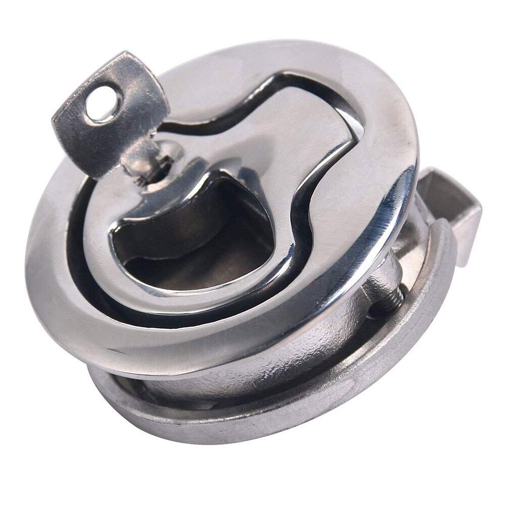 Puxador com sistema de trava e tranca com chave, todo feito em inox para uso em paióis, tampas, portas de acesso e armários que se deseja manter com um bom sistema de trava e possibilidade de ser chaveado, evitando a abertura por estranhos.