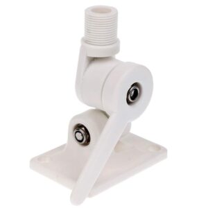 Essa base de antena para montagem em guarda mancebos é adequada para todas as antenas marítimas com encaixe padrão de uma (1) polegada. Feito de plástico ABS para resistir ao ambiente marinho.