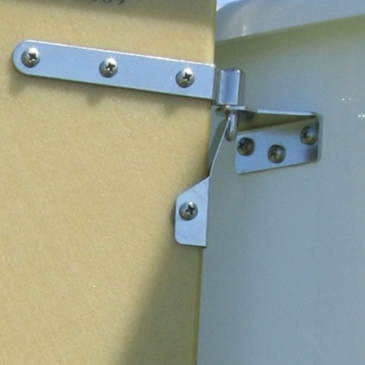 Ferragens de aço inox para travar o leme dos veleiros Optimist.