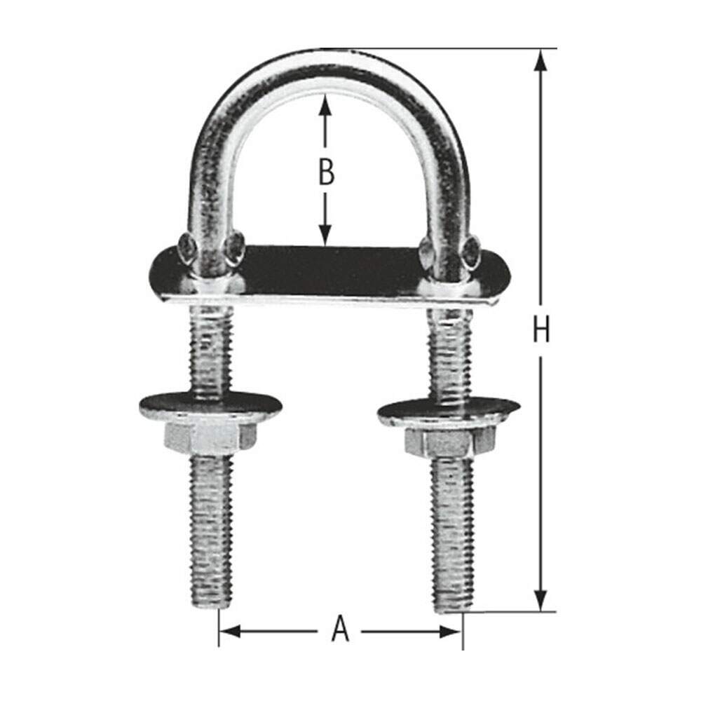 Ferragem em U Aço Inox tipo U-Bolt 10mm usado na proa de embarcações para amarra ou para fixar na carreta, e também usado na popa para pontos de fixação e/ou com engate para puxar esquis.